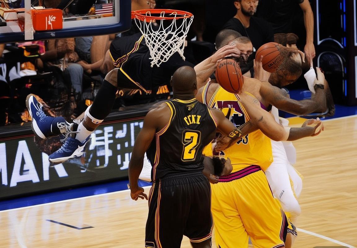 - 骑士队发动快攻,勒布朗·詹姆斯突破上篮,虽然被防守球员扑倒,但他仍然顽强地用膝盖将球送入篮筐。